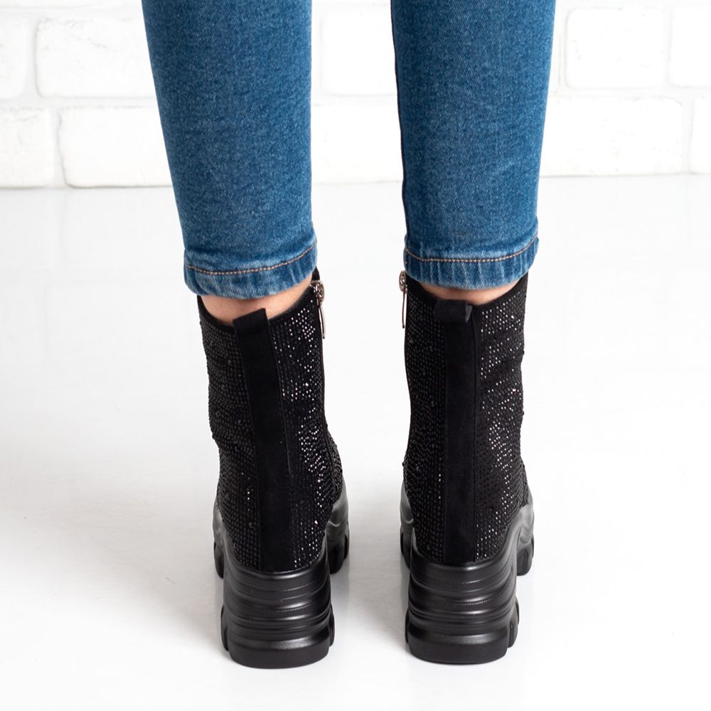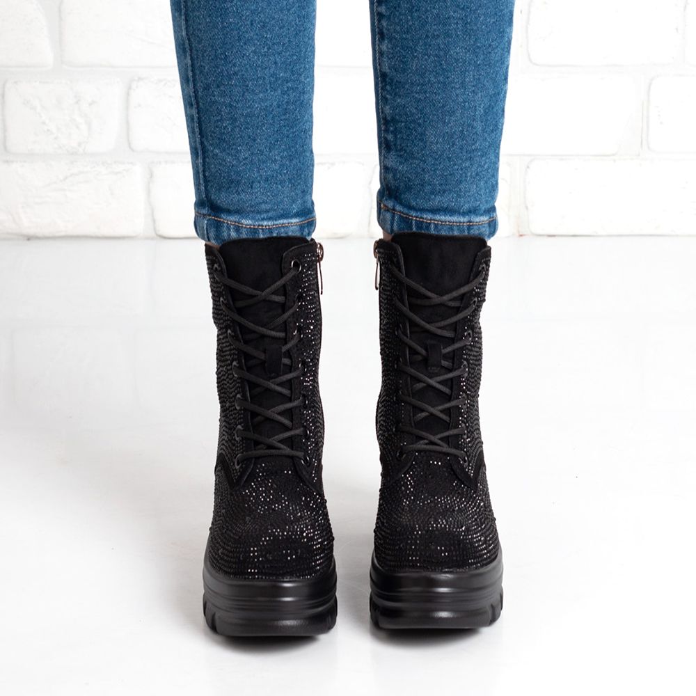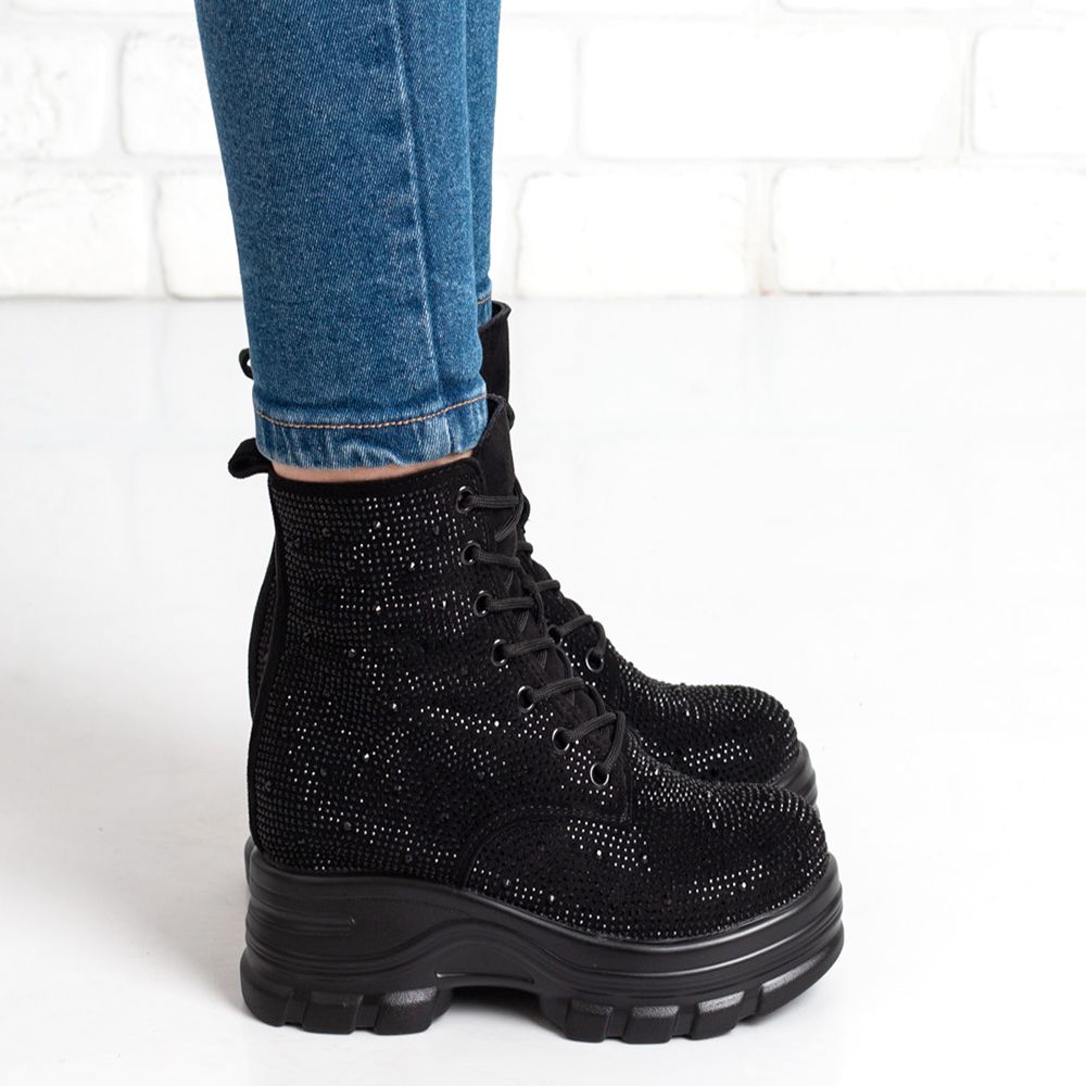 Комфортни дамски боти в черно с черни камъчета. Стъпвай удобно при всяка крачка.