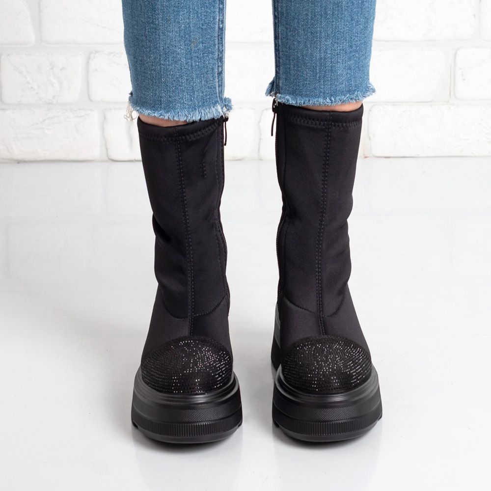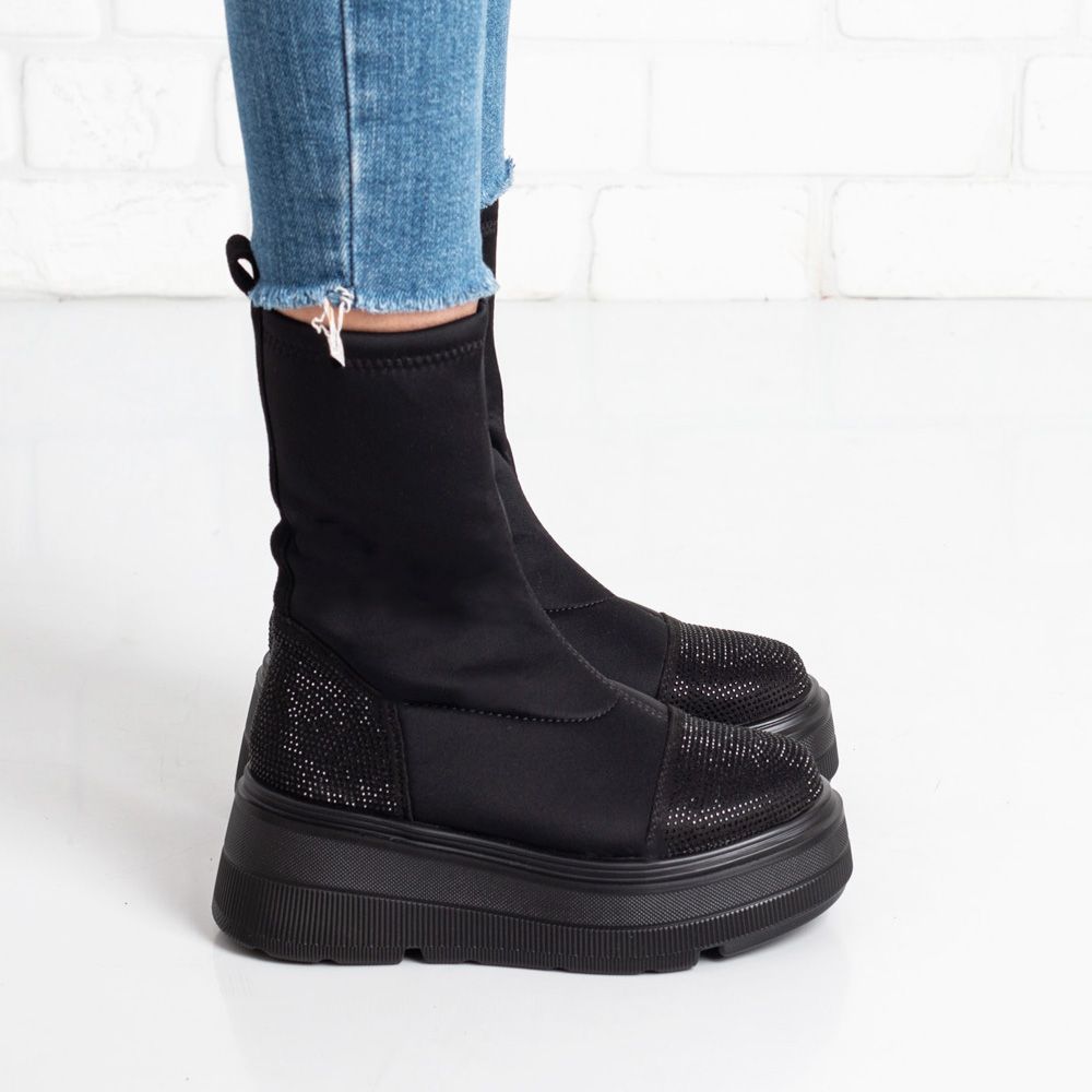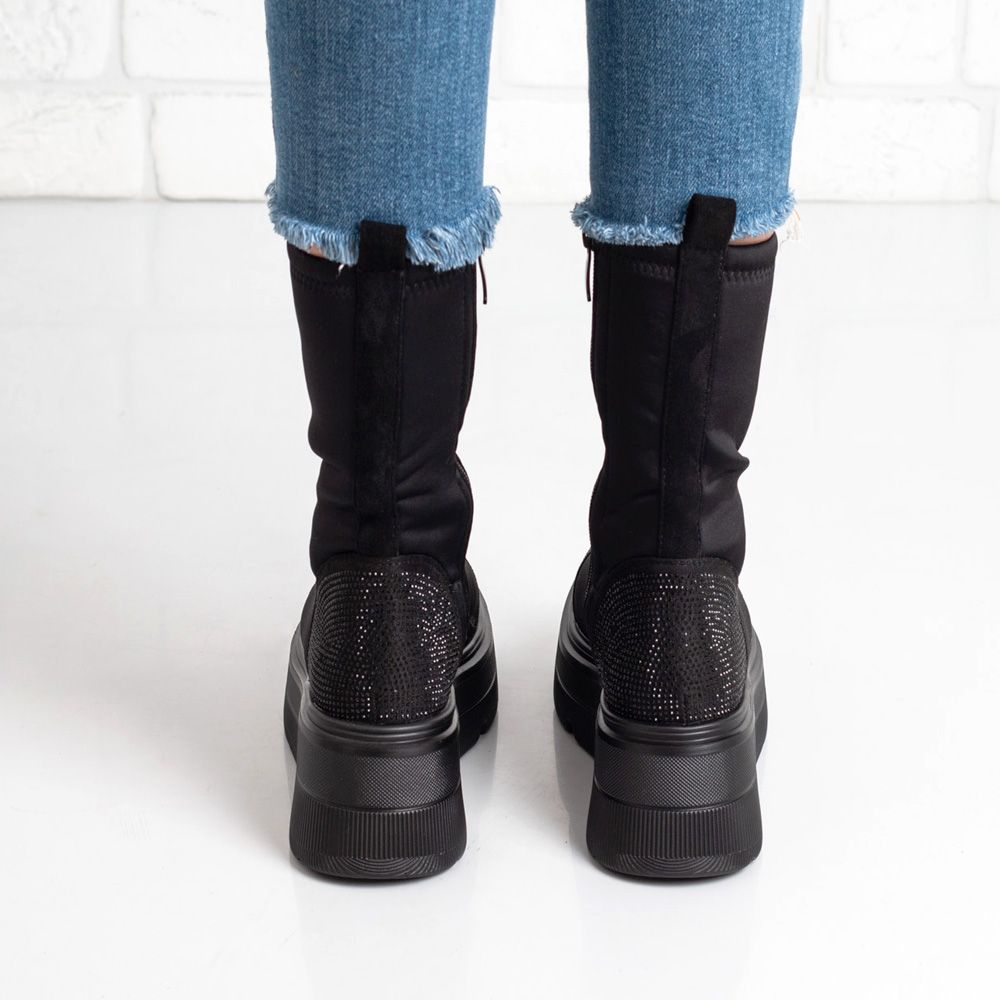 Комфортни дамски боти в черно с камъчета. Стъпвай удобно при всяка крачка.