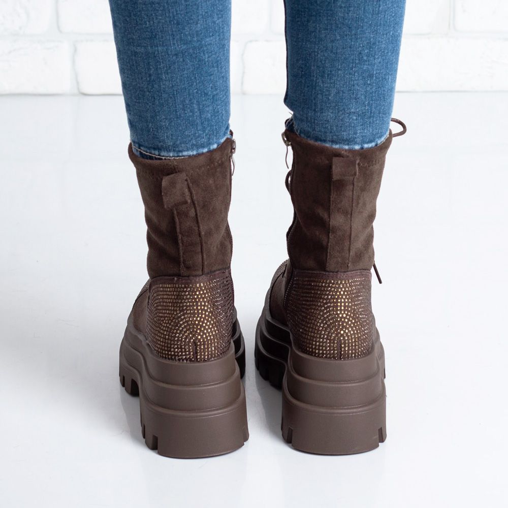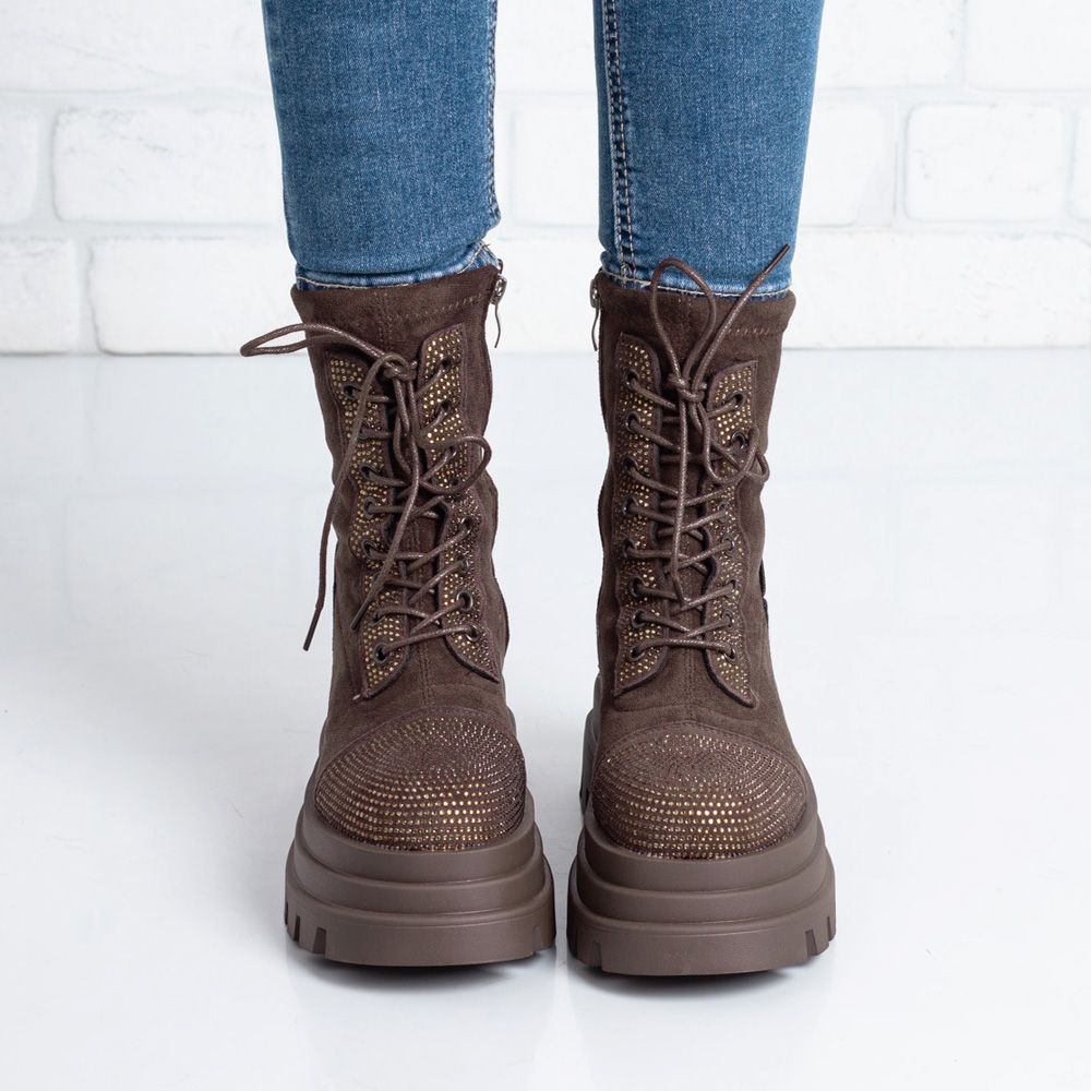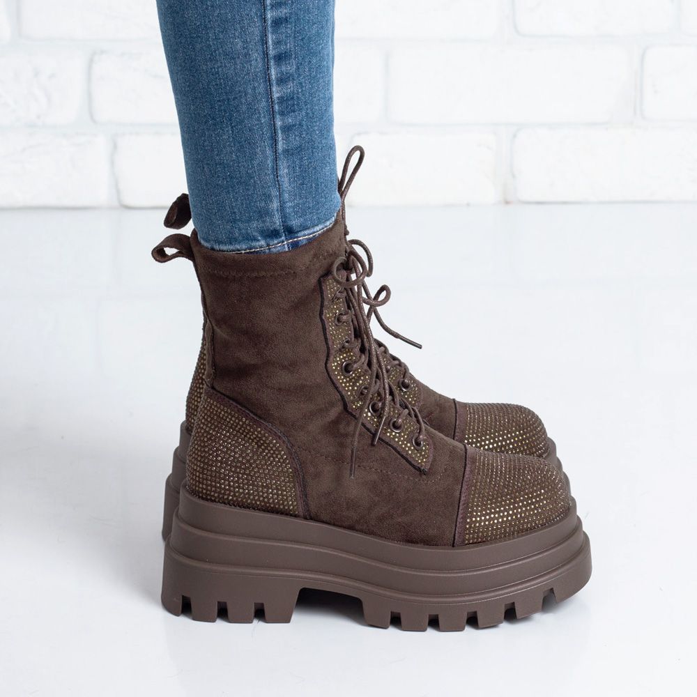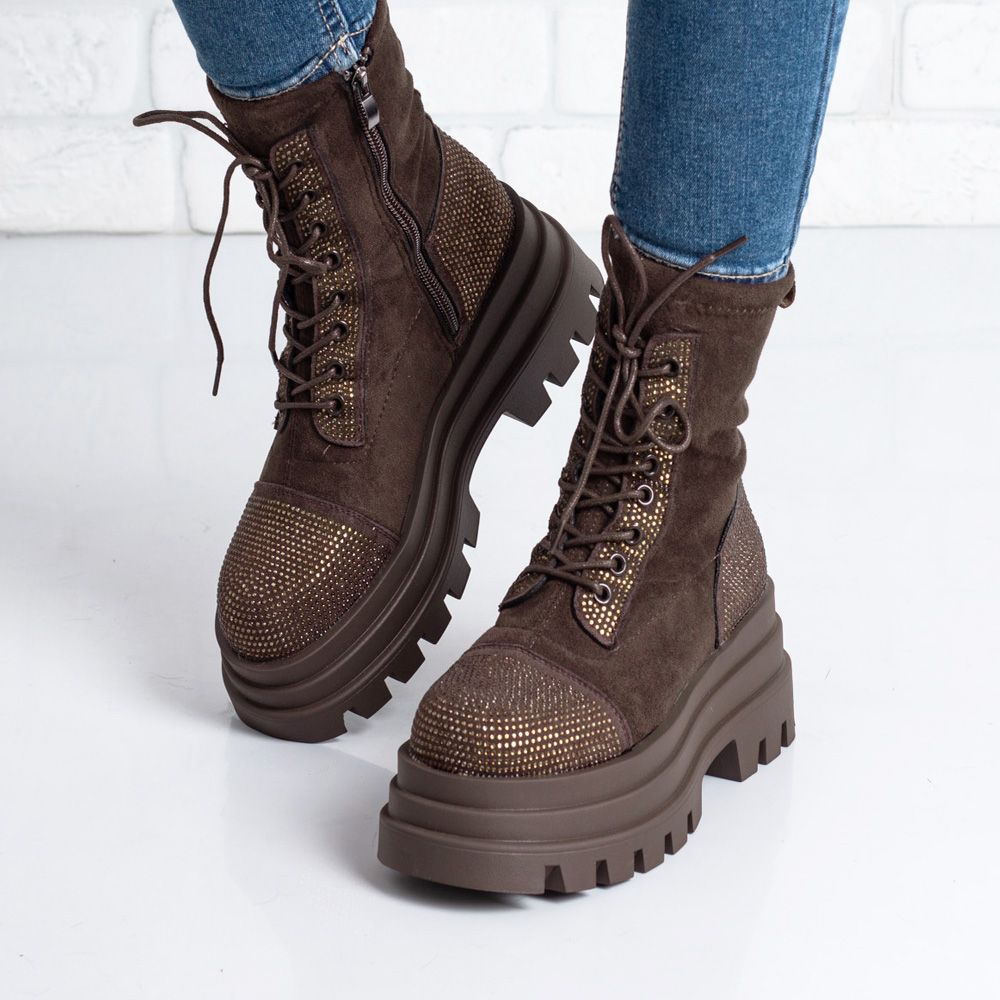 Уникални и ефектни дамски боти в кафяво с камъчета! Стъпвай удобно при всяка крачка.