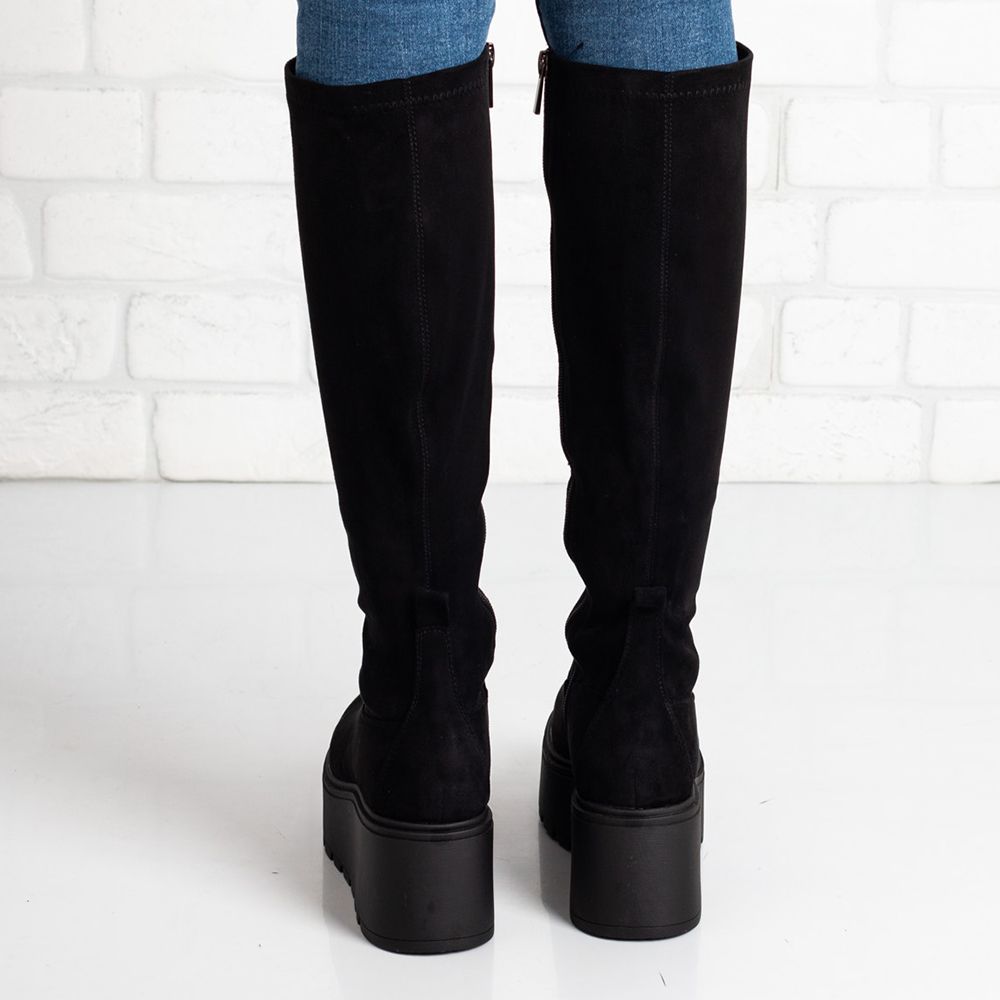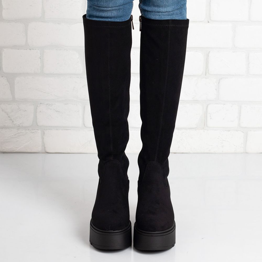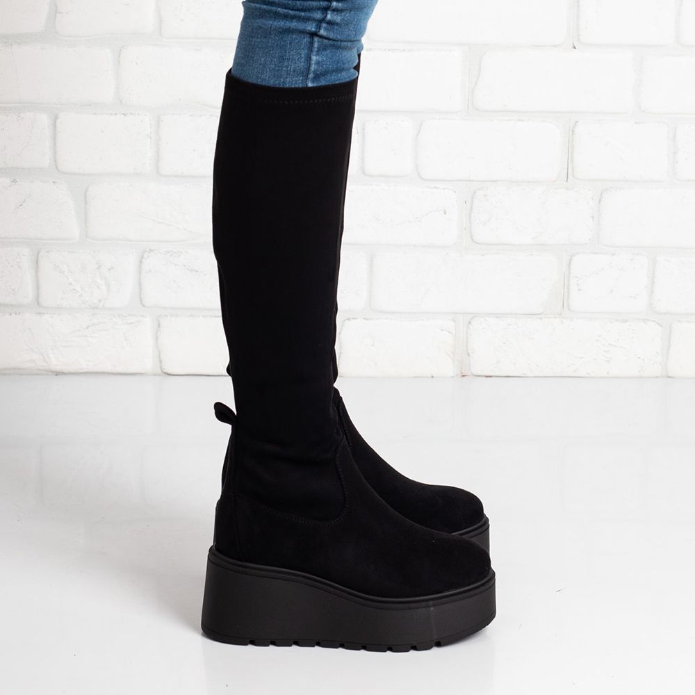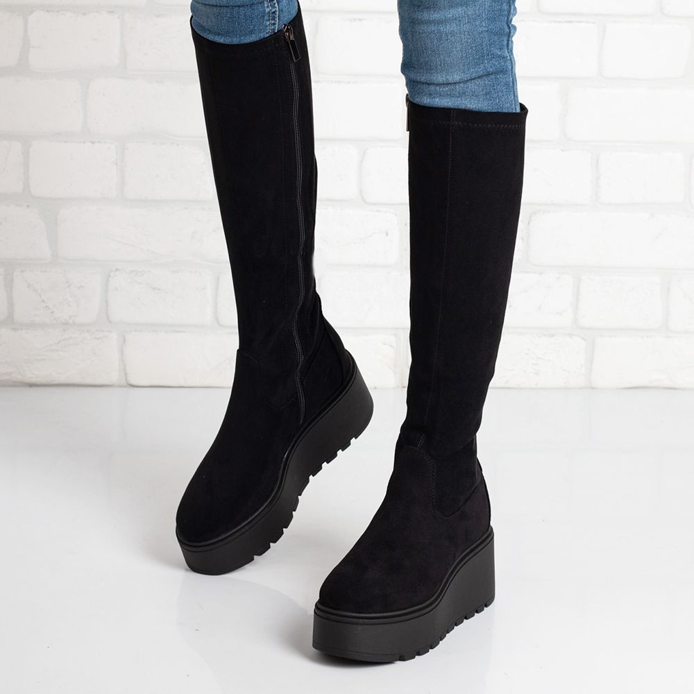 Комфортни дамски ботуши на платформа в черно. Стъпвай удобно при всяка крачка.