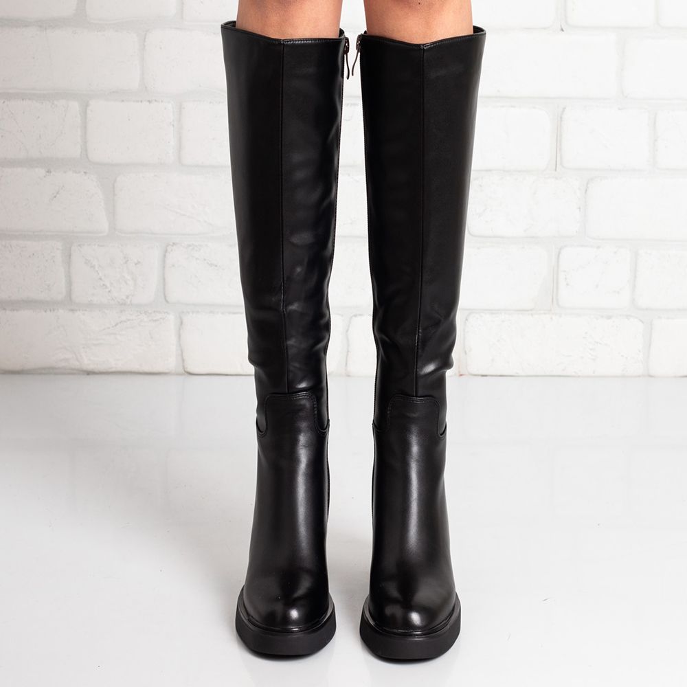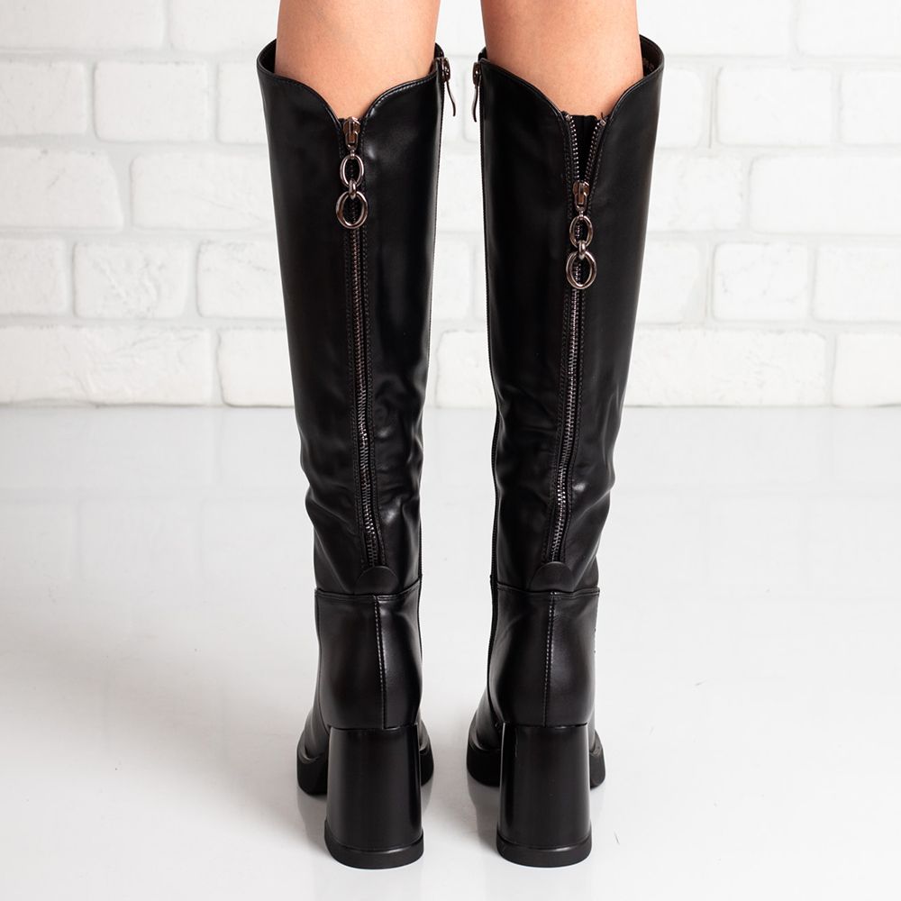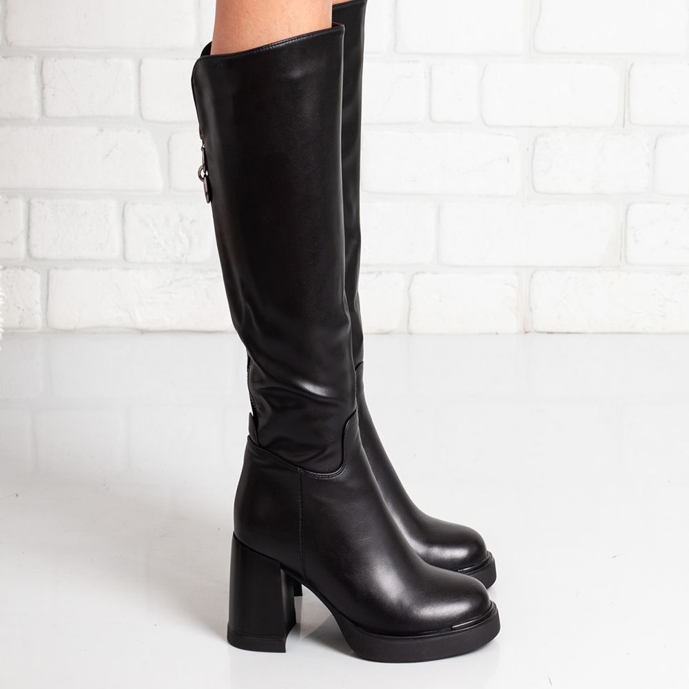 Комфортни дамски ботуши на ток в черно. Стъпвай удобно при всяка крачка.