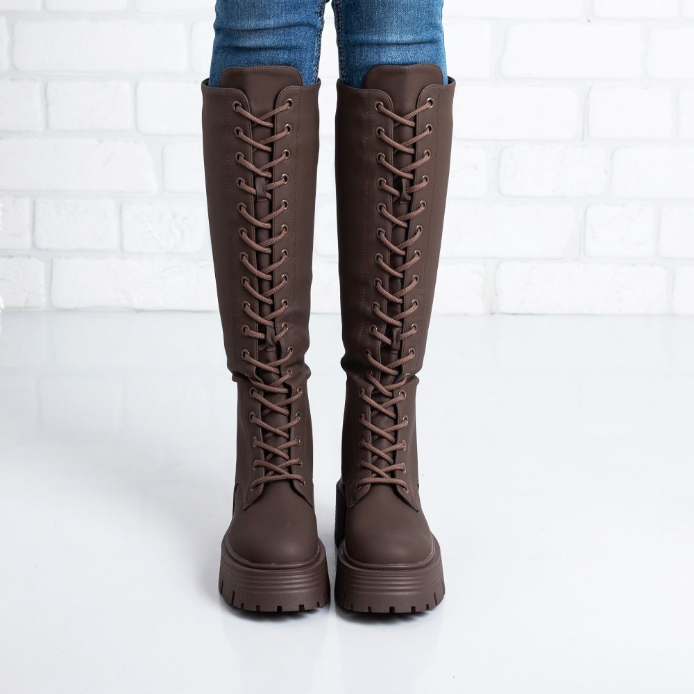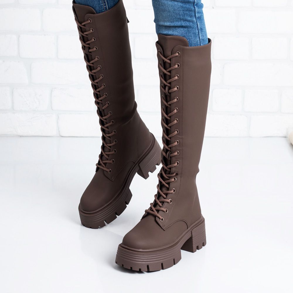 Комфортни дамски ботуши в кафяво. Стъпвай удобно при всяка крачка.