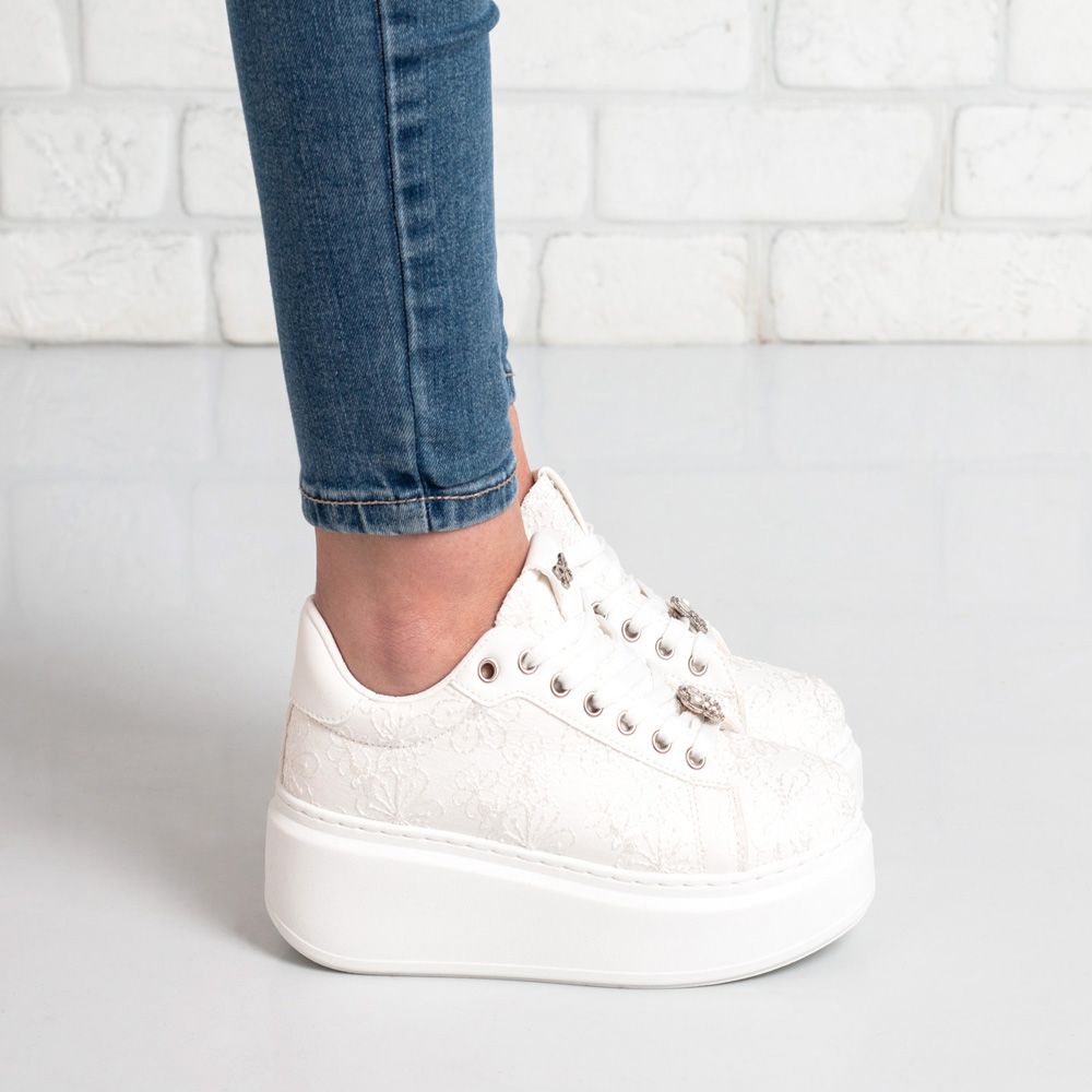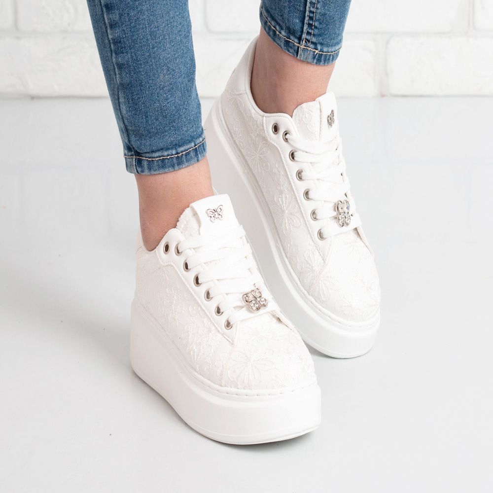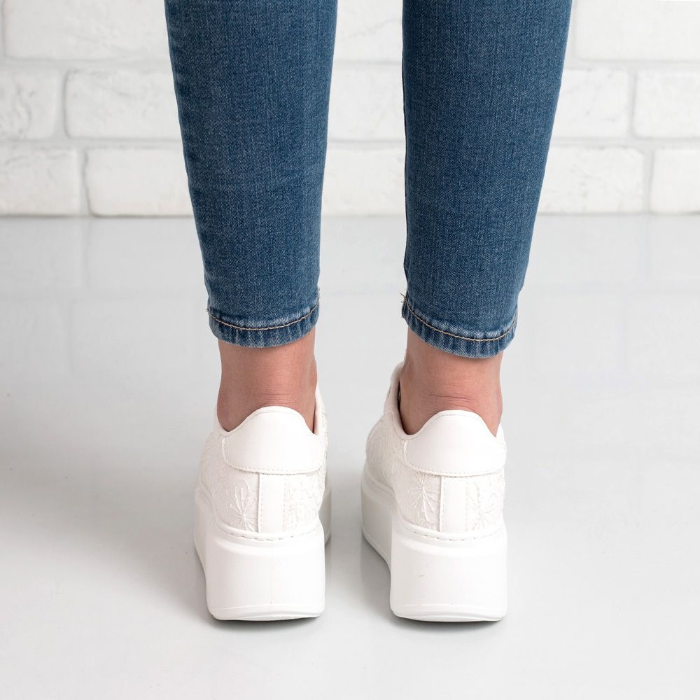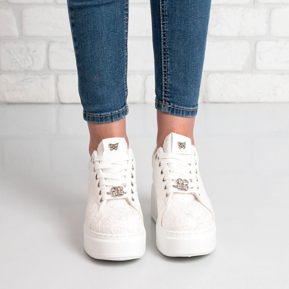Комфортни дамски кецове в бяло, актуални за новият сезон с нашити цветя. Стъпвай удобно при всяка крачка.