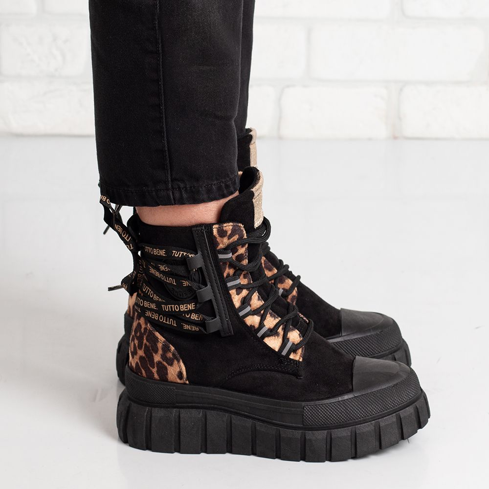 Комфортни дамски кецове в черно с леопардов принт. Стъпвай удобно при всяка крачка.