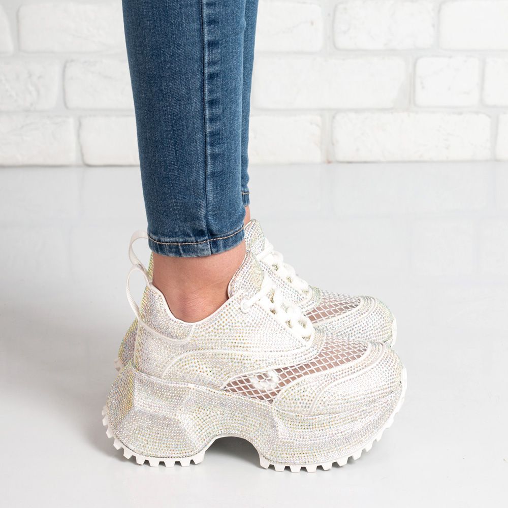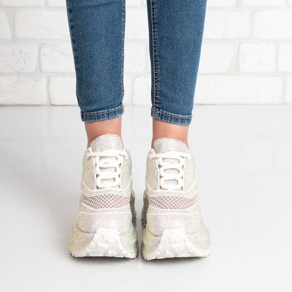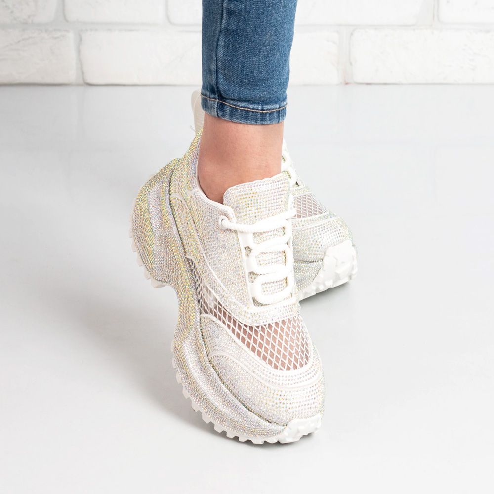 Стилни маратонки, декорирани с елегантни камъчета и мрежеста,дишаща горна част. Леки и удобни, подходящи за ежедневие и модерни визии.