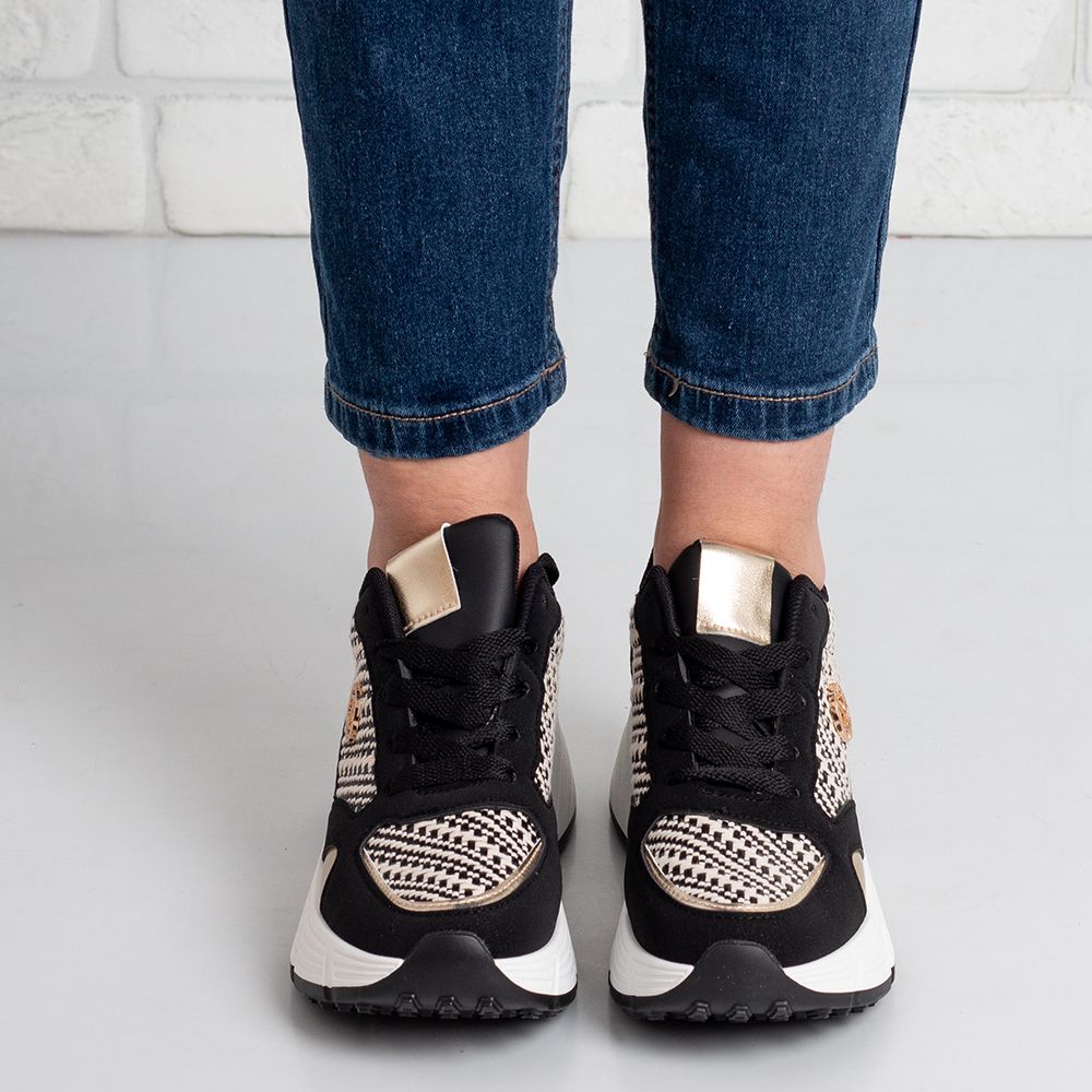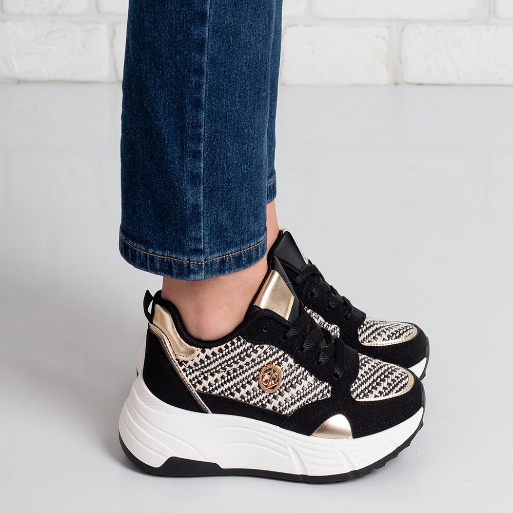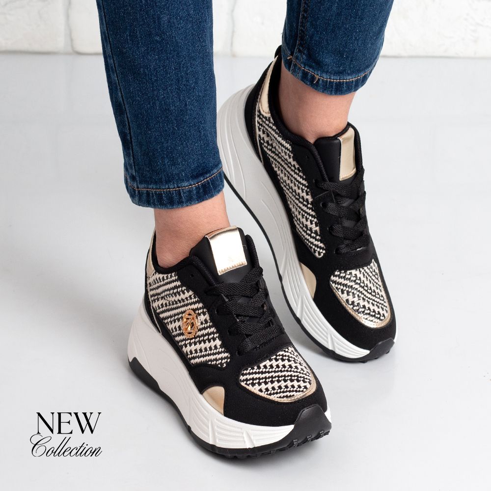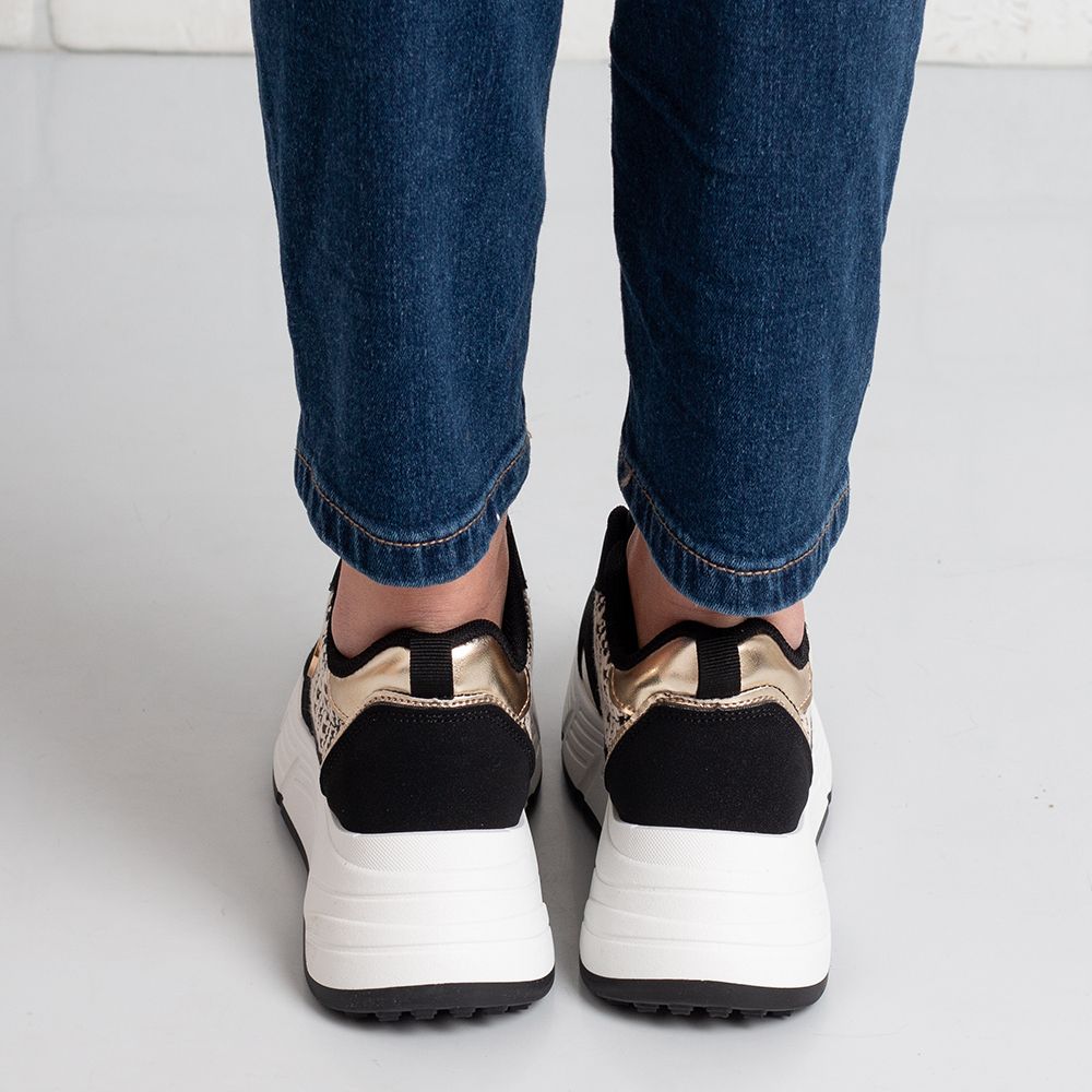 Дамски маратонки в черно и златисто